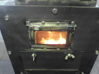 横にして燃焼面積を広くしたのに、釜の前半分でしか燃えていない。