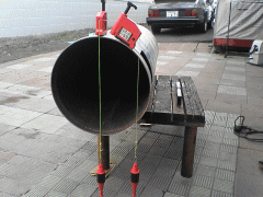 焼却炉の管と直角に、接続時に隙間が出来ないようにきっちりと加工しなければならない。